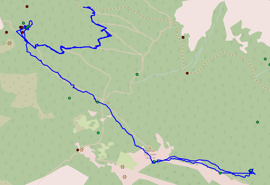 Ora lo zaino e’ “solo” pesante e riesco a caricarmelo in spalla. Chiudo l’auto e parto. La mia prima meta e’ il gruppetto di grotte intorno alla piu’ rilevante, la grotta Miguel Enriquez. Per andare verso di loro decido di non seguire il sentiero usato la volta scorsa per andare all’Abisso Veramente ma salgo piu’ diretto. Col mio fido GPS (di cui, ahime’, non riesco quasi piu’ a leggere il minuscolo schermo!) faccio la traccia della mia passeggiata che vi mostro. A fine giornata avro’ fatto 6 chilometri con almeno 200 metri di dislivello, un’inezia per i professionisti dell’escursionismo ma piu’ che abbastanza per me.