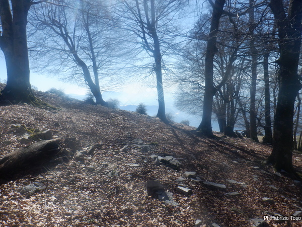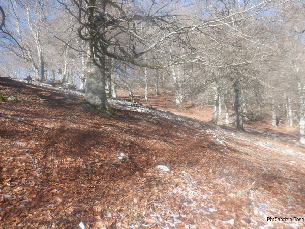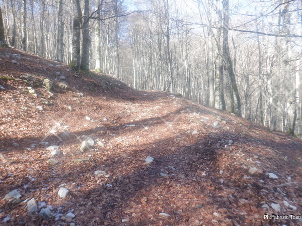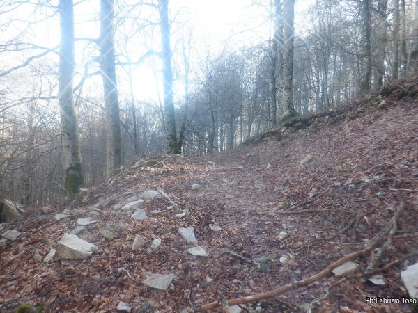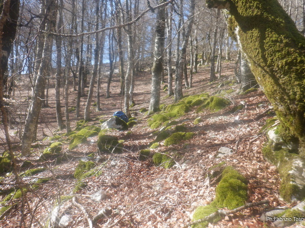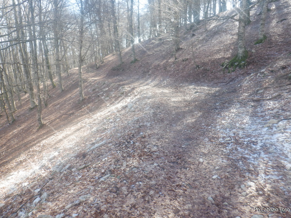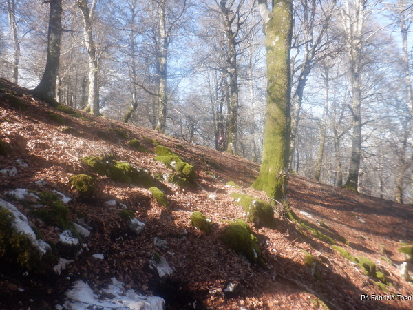 Ogni tanto incrocio il sentiero ma per la maggior parte del primo tratto di bosco salgo su dritto per dritto…per quanto riesco.