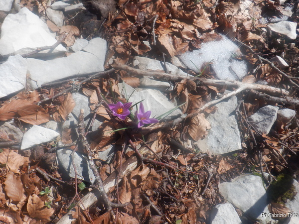 Visto che all’abisso Veramente sono gia’ in tanti e che il posto per lavorare e’ angusto, circuisco Laura e la convinco a seguirmi, vorrei ritrovare una grotta nuova. Visto che Laura non ha portato con se’ l’attrezzatura oggi e’ venuta in veste di sherpa. E’ senza attrezzatura, pero’ ha portato i guanti e, quando mi accorgo di aver lasciato i miei in macchina, me li presta volentieri. Bene, possiamo andare.