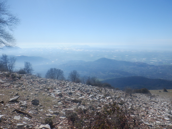 E’ quasi il momento di lasciare il sentiero. Dall’alto arriva un escursionista con il suo cane al guinzaglio. Si vede che la mia faccia affaticata si nota perche’ passando mi saluta dicendo: “dai che sei quasi arrivato!”. In effetti sono quasi arrivato, ma non dove pensa lui!