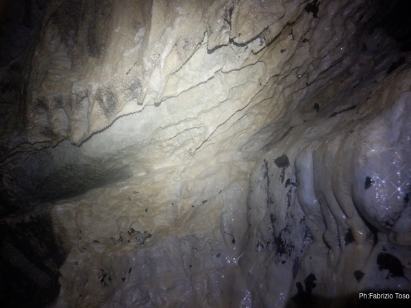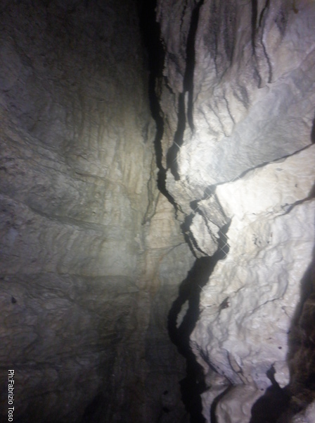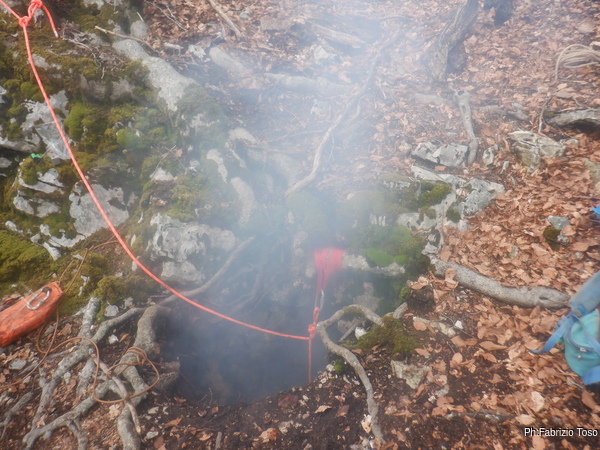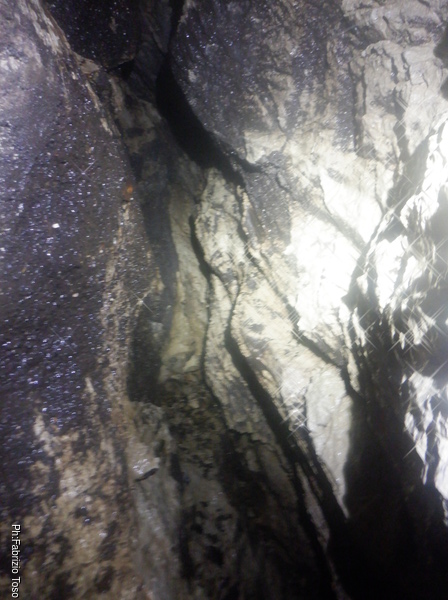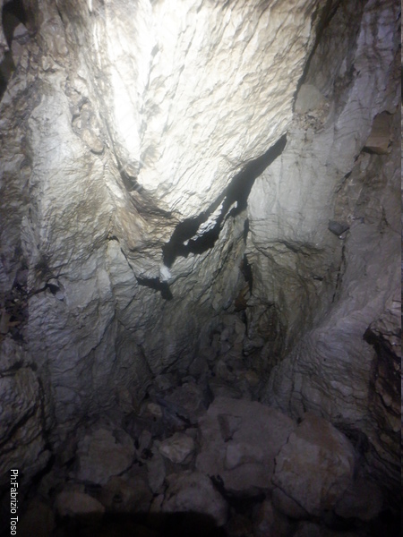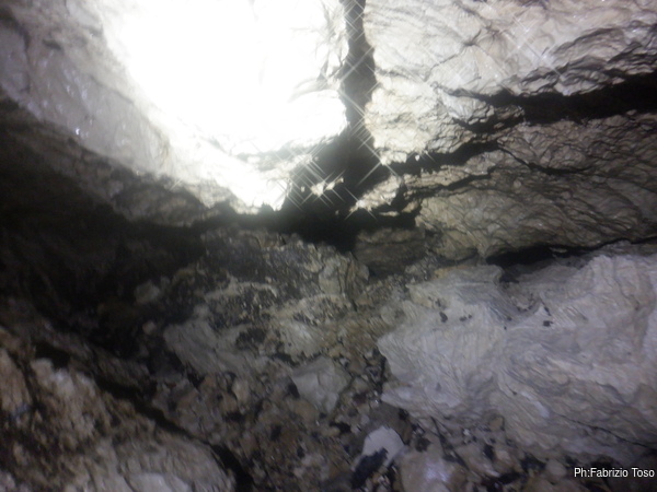 Stavolta Pino, prima di iniziare i lavori di allargamento ha fatto un salto giu’ al fondo e ha detto che puo’ valere la pena lavorarci. Potrebbero esserci sviluppi in un prossimo futuro. Per ora solo freddo. Terminato il mio “turno” inizio a salire. Il tratto nuovo da salire, quello aggiunto oggi, sara’ di 5 metri ma si tratta di 5 metri scomodi, avrei allargato un po’ di piu’.