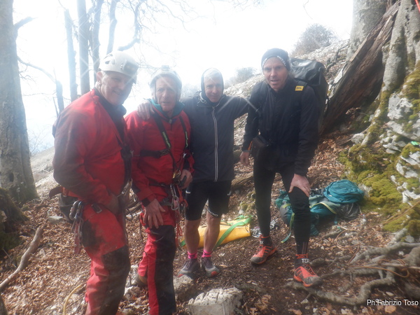Sono quasi alla grotta. Mi avvicino quatto quatto e solo Laura si accorge del mio arrivo ma poi ci perdiamo volentieri nei saluti con tutta la banda oggi riunita. Sono gia’ in parecchi e si stanno ancora preparando per entrare in grotta. C’e’ Laura come rappresentante femminile, ci sono poi Marco, Fabio, Pino, Piero, Marco e Simone. Con Simone in particolare e’ un incontro emozionante, ci siamo visti l’ultima volta che aveva circa 20 anni, lo rivedo oggi a piu’ di 30 anni di distanza. Ora ha i capelli bianchi ma nello spirito ritrovo il ragazzo che ricordavo.