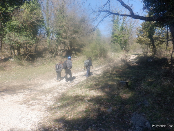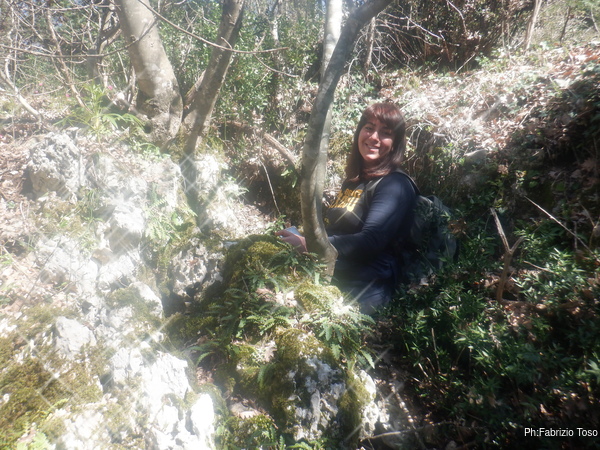 Una volta riuniti fuori dalla grotta facciamo il punto della situazione. La visita alle grotte conosciute l’abbiamo terminata, nel frattempo Alessandro ha mandato un messaggio a Maria per avvertire che e’ arrivato alla “quasi-grotta” che sta scavando e che ci aspetta la’. Riprendiamo gli zaini e ci avviamo. Io riprendo per il sentiero fatto all’andata, i miei amici, Alice compresa, optano per l’altro quindi li perdo momentaneamente di vista.