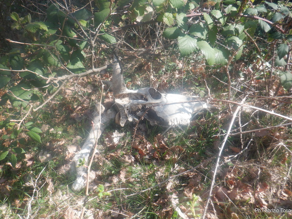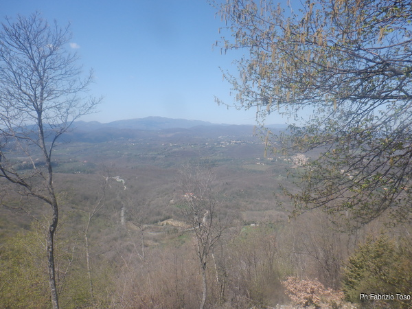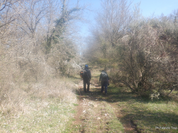 Riprendiamo il cammino. Naturalmente non scegliamo di camminare sul comodo sentiero ma ci inoltriamo in un fosso ingombro di rovi, nemmeno a dirlo dopo qualche minuto mi procuro una serie di graffi che sanguinano generosamente, quello piu’ fastidioso e’ sulla punta del naso che rischia di gocciolarmi sui vestiti.