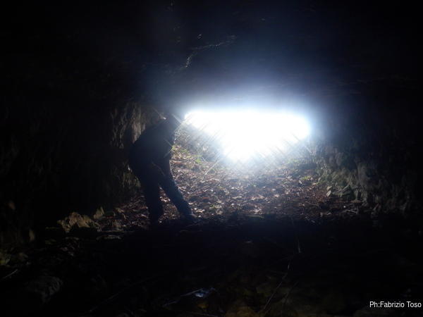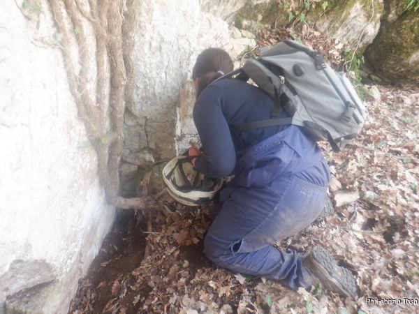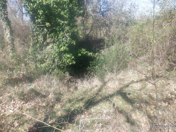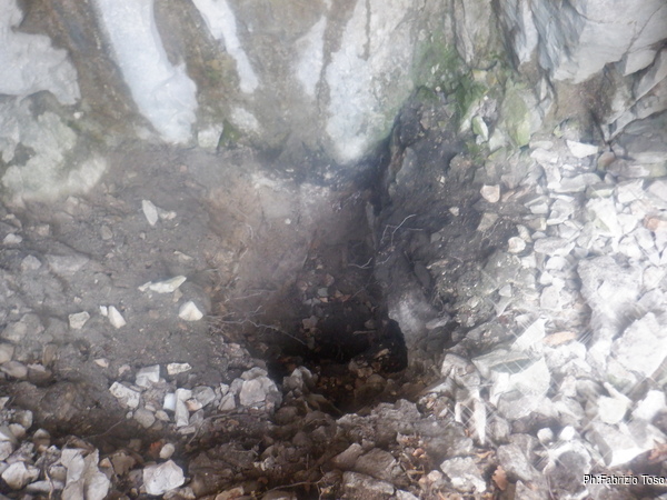 Di lato allo scavo notiamo un buchino che sembra piu’ interessante. Sara’ largo tre dita ma le ragnatele che ci sono all’ingresso sembrano oscillare per la corrente d’aria che viene da dentro. Un ottimo indizio. Lasciamo tutto cosi’ com’e’ e proseguiamo la passeggiata.