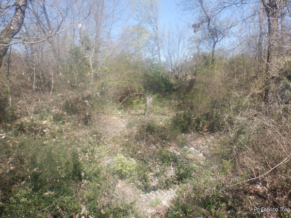 Uno sprofondamento di un paio di metri a lato di una delle stanze fa pensare a un pozzo “rappilato”, scendo a vedere ma si prospetta un lavoro non breve, sposto oziosamente qualche sasso, desisto quasi subito riprendendo il mio girovagare.