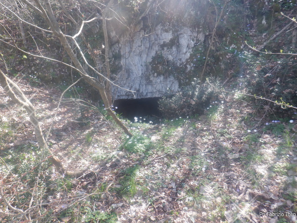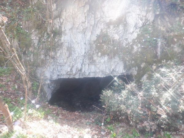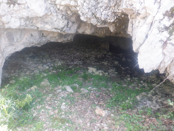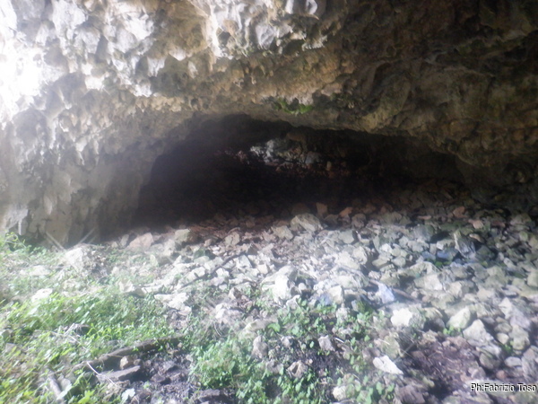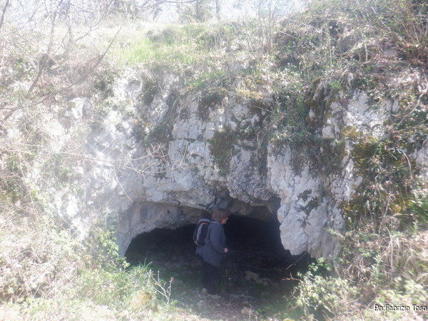 Arrivati all’ometto, sulla destra si vede il maestoso ingresso della grotta. Come gia’ detto prima non ho alcun ricordo di questa grotta. Data la mia scarsa memoria il non ricordarlo non e’ conclusivo, ad ogni modo mi preparo a visitarla con molto piacere.