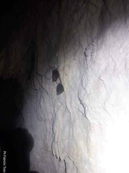 Un paio di pipistrelli, li illumino il meno possibile per non disturbarli. A fine giro ne avro’ incontrati almeno una ventina di un paio di specie.