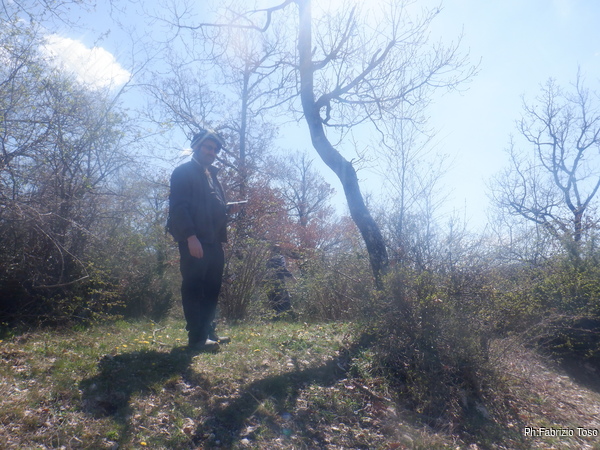 Potrebbe essere la quasi-grotta che sta scavando Alessandro, che ci raggiungera’ piu’ tardi. Infatti ci sono tracce di uno scavo, lo osservo un poco scettico, mi sembra un lavoro immane da completare e all’apparenza senza molte prospettive.