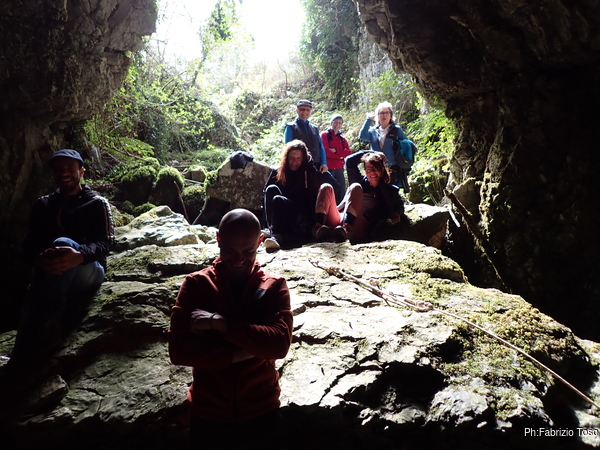 Io alterno le foto tra loro e il gruppo assiso e assistente al limitare della grotta.