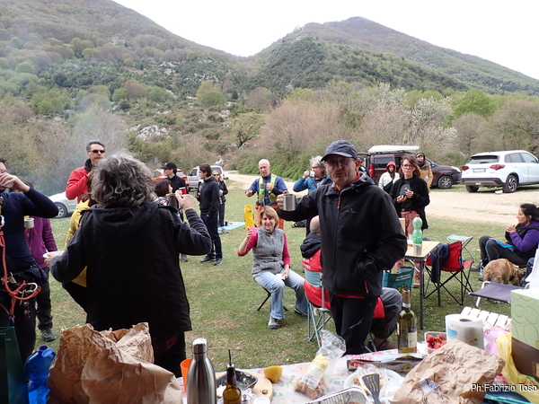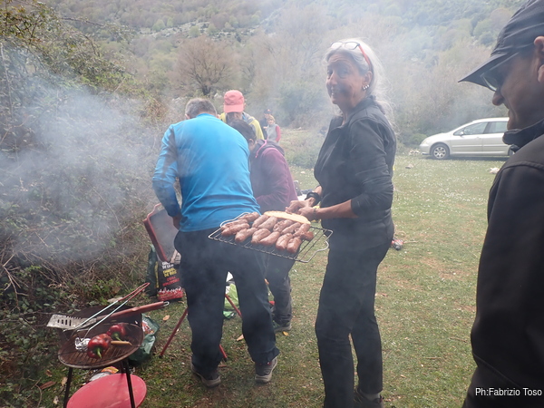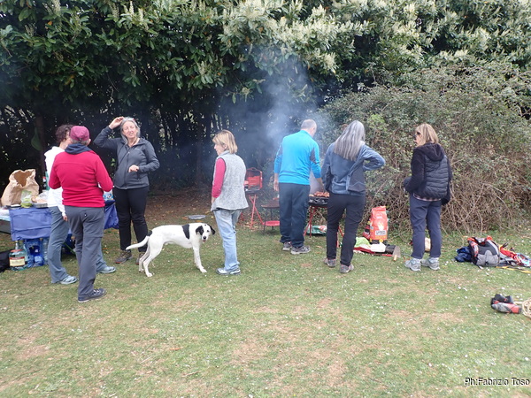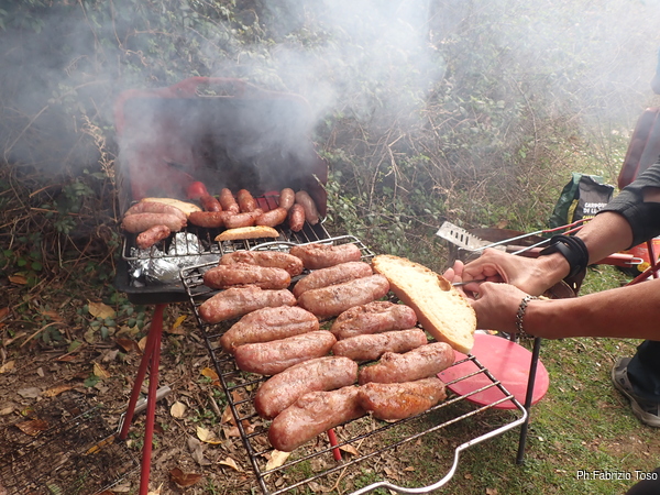 Io sono piu’ attratto dalla zona cucina, contribuisco al caos andando a dare una mano per far accendere la carbonella, nel frattempo ne approfitto per farmi un paio di gustose bruschette. Nei tempi morti affetto il salame che subito sparisce, quattro o cinque fette pero’ riesco a catturarle e poi le divido fraternamente con Betta. A Luna, per non deluderla troppo, lascio i ciccetti di grasso del salame.