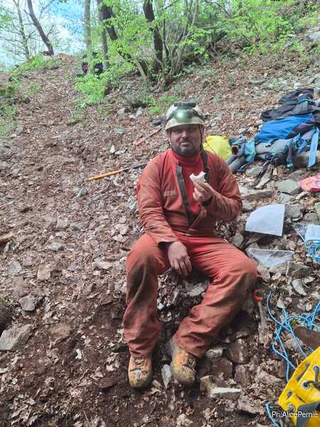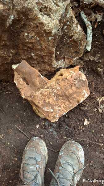 Prima di proseguire vi presento il cuore di grotta Flavia e topino Flavio. Il primo e’ stato trovato tra le pietre spostate oggi e topino si aggirava preoccupato cercando di capire perche’ gli stavamo distruggendo casa. Alla fine topino e’ stato parzialmente ricompensato con alcune briciole che pare aver gradito.
