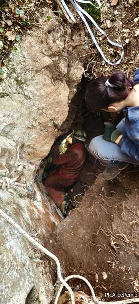 Con Alice, Sally, Alessio e Alessandro a proseguire i lavori con la speranza di trasformare un buco in grotta.