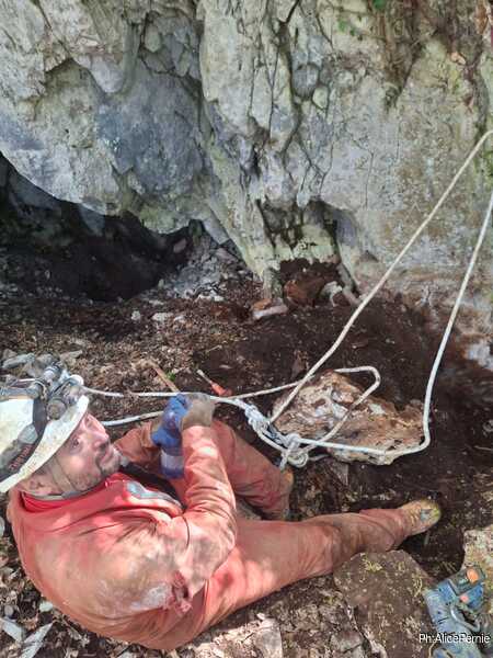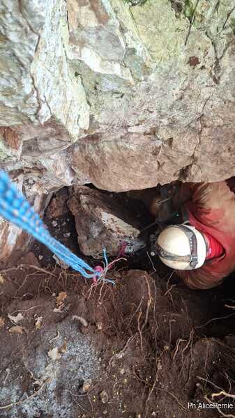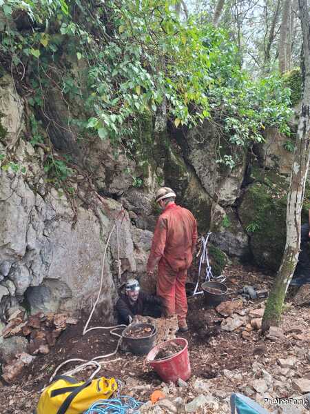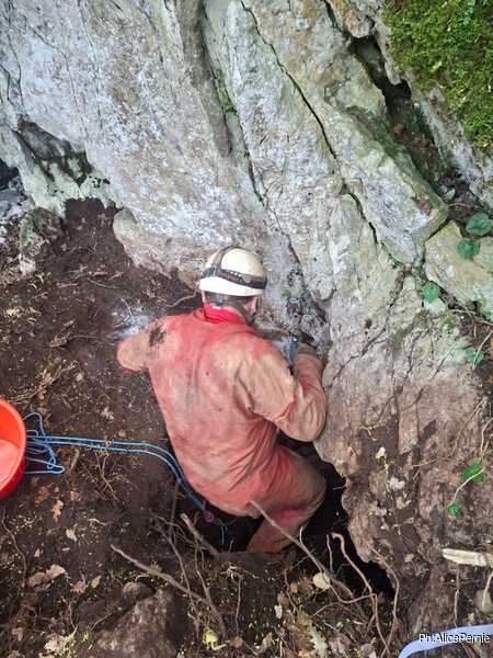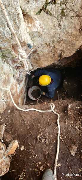 Alessandro e’ il vero “titolare” dello scavo e ha gia’ scelto il nome di quella che sara’ una nuova grotta. La vuole intitolare alla sua figliola. Io seguendo il suo ottimismo ho completato il nome aggiungendo il toponimo. Il nome completo, quando questo buco sara’ grotta, sara’ quindi: “Grotta Flavia a Muro Pizzo”.