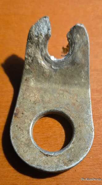 Anche se senza danni ogni caduta ha un forte impatto emozionale, mi servono alcuni secondi per riprendermi e capire cosa sia successo. Appurato che il multifix e’ ancora al suo posto vado alla ricerca della piastrina e la trovo come mostra la figura, la lesione che avevo notato purtroppo era troppo estesa e la piastrina non ha retto al carico.