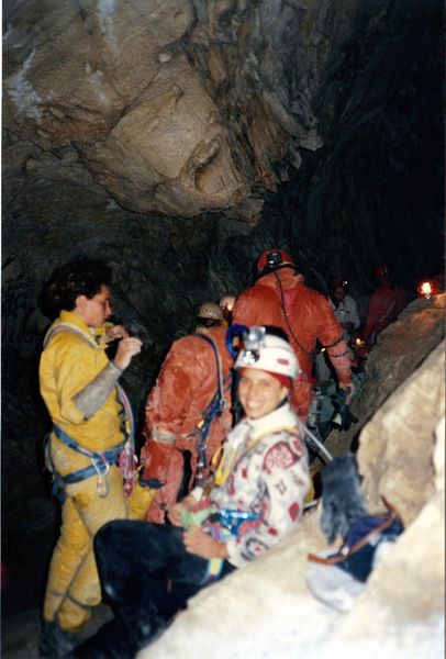 Credevo si trattasse di una uscita al Corchia fatta per nostro diletto ma poi e’ arrivata in mio aiuto Tiziana. Si tratta in realta’ dell’uscita di fine corso e quindi nel periodo tra fine Novembre ed inizio Dicembre. Riconosco nel gruppo Tiziana, Luisa, Paola, Max e Marco. Non riesco ad essere molto preciso nemmeno circa i punti della grotta dove ho scattato le foto perche’ sono almeno 15 anni che non torno a fare la mitica traversata del Corchia.