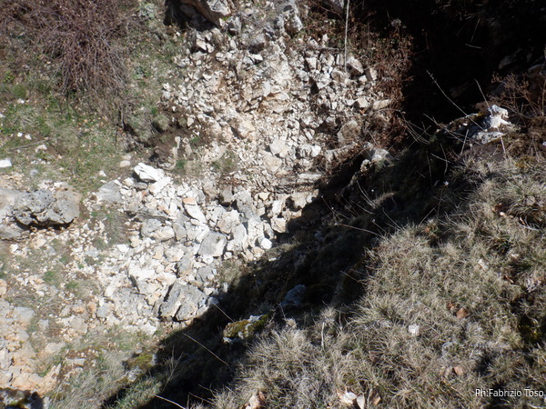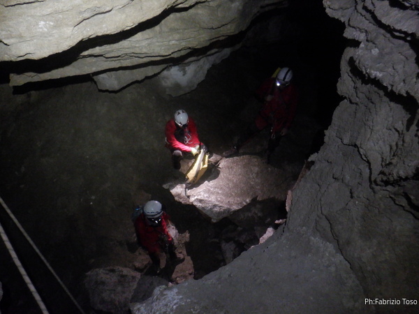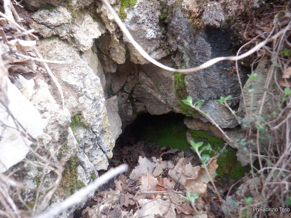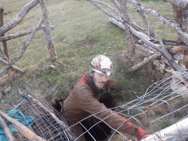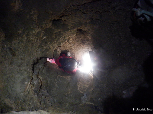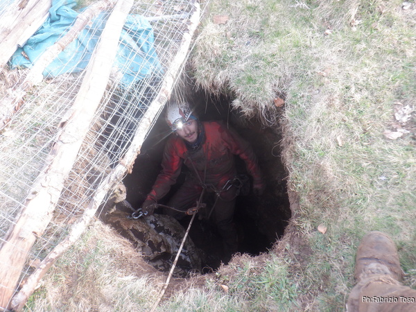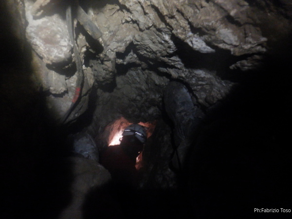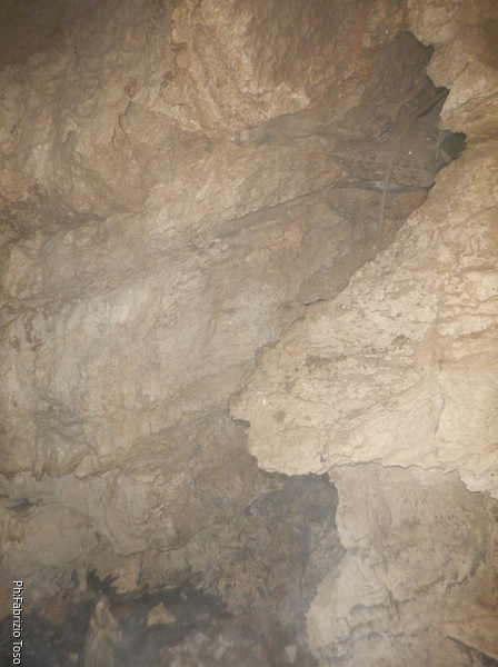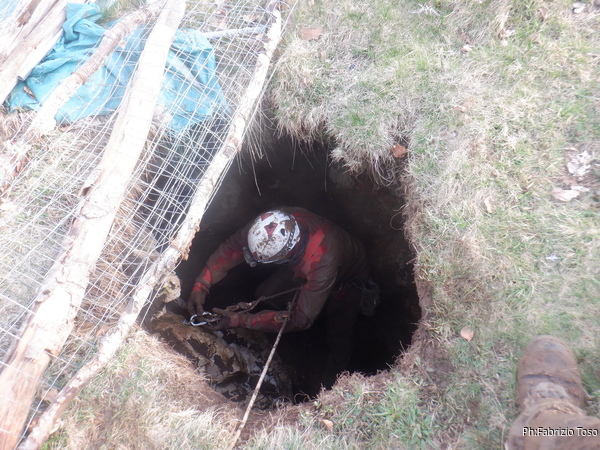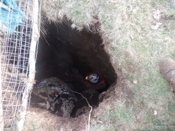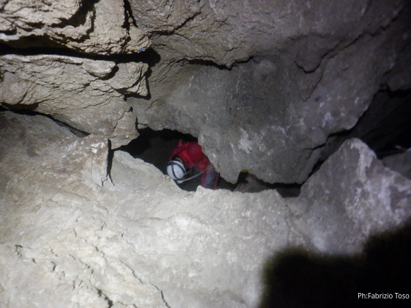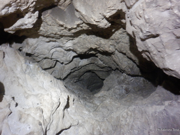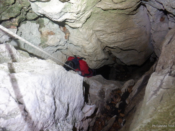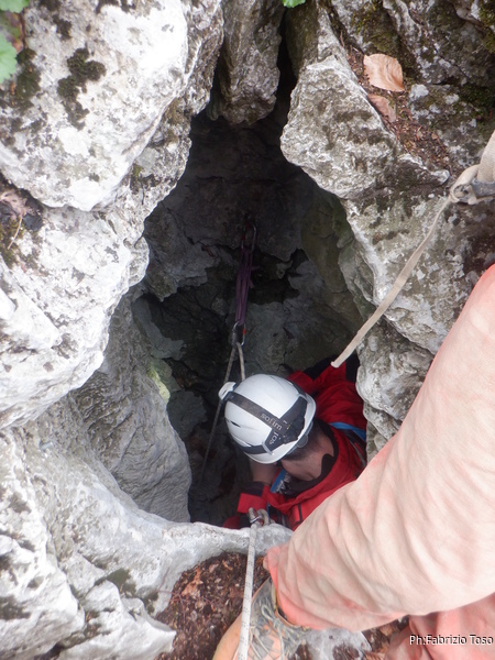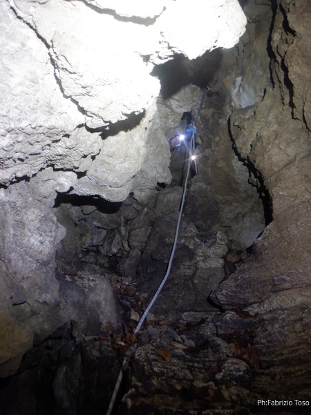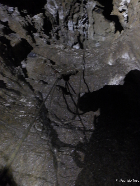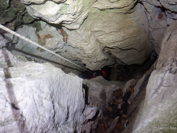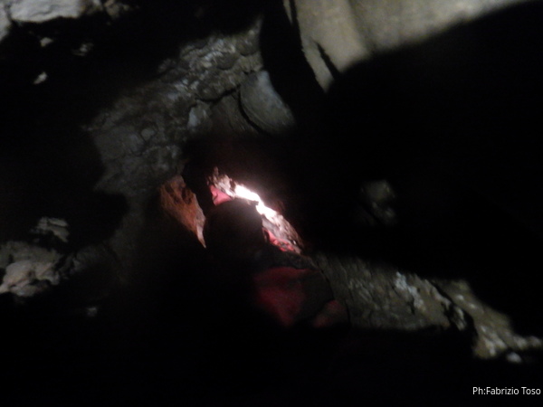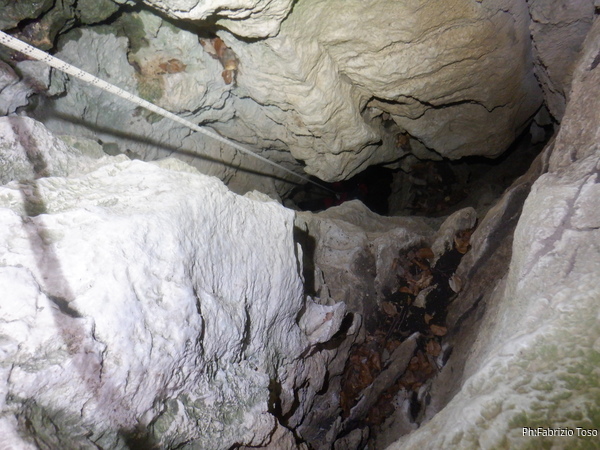 Questo e’ il pertugio con la corda da cui e’ sceso Luca.