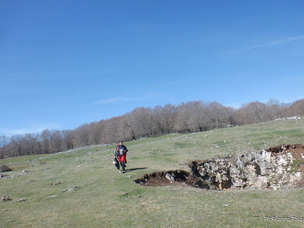 Ecco Luca che arriva passando anche lui accanto alla dolina intermedia.