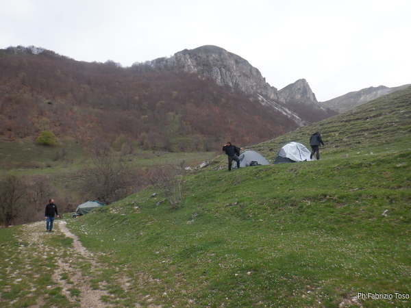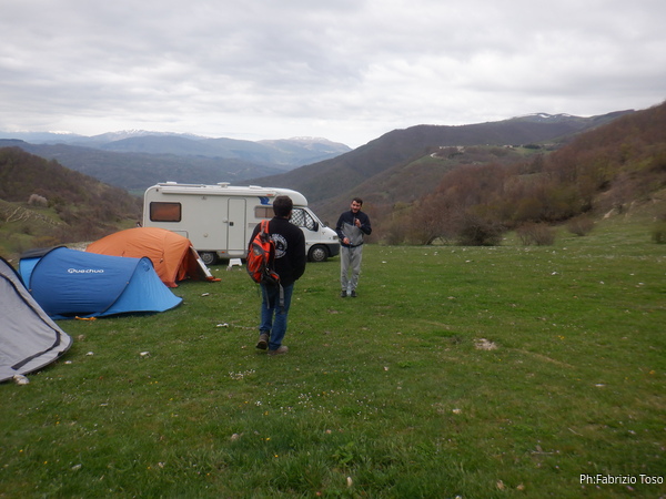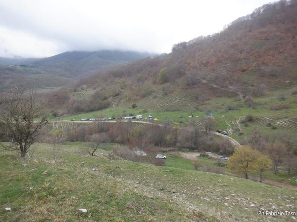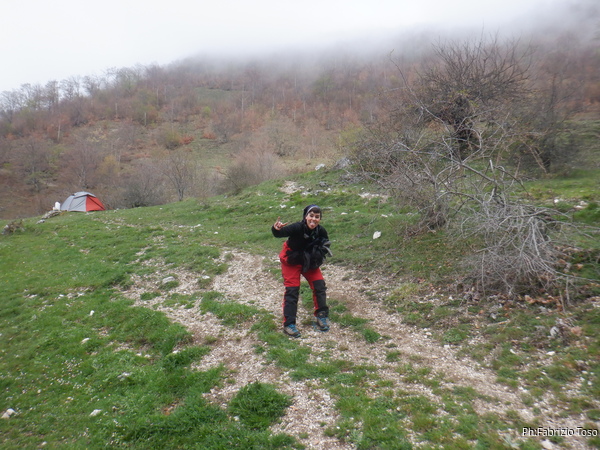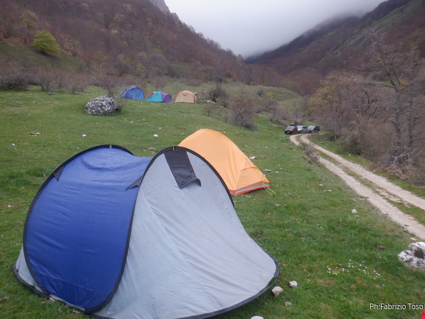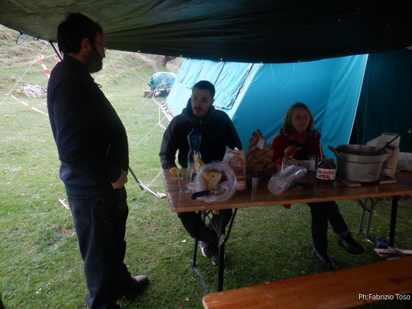 Intanto il campo inizia a risvegliarsi. I cucinieri non sono ancora in attivita’ quindi mi faccio coraggio e preparo il caffe’ con la solita moka gigante. Un corroborante bicchiere abbondante di caffe’ bollente e’ il mio premio, lo accompagno con una bella fetta di pane e nutella che non guasta. Anche Angelo e’ sveglio, tra poco lui e Linda si uniranno con Manuel e Alessio per tornare in grotta. Luca preferisce fare una passeggiata mentre Gabriele ed io andremo a cercare la “buca di Terzone”, ma solo dopo aver trovato un bar per fare colazione.
