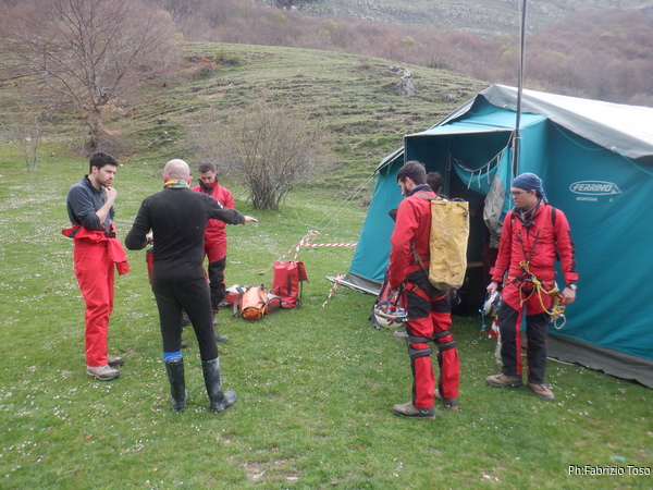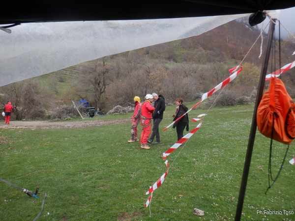 Siamo quasi pronti, a meno delle ultime chiacchiere, ma fa troppo caldo per stare fermi con la tuta speleo addosso.