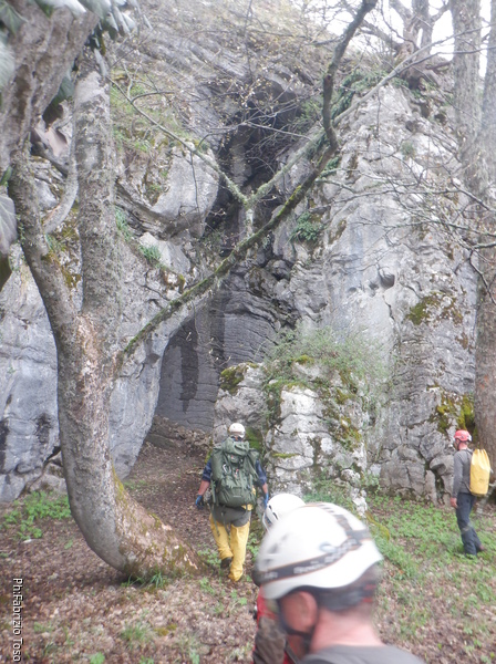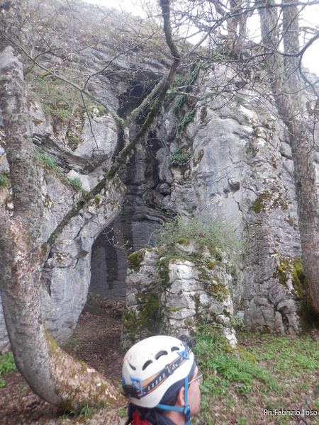 Partiamo. Faccio strada e cerco di ricordarmi la strada per l’ingresso della grotta. In pochi giorni i rovi hanno quasi chiuso il sentiero rendendo difficoltoso il passaggio ma nonostante queste piccole difficolta’ in breve siamo in vista dell’ingresso e del fresco che promette.