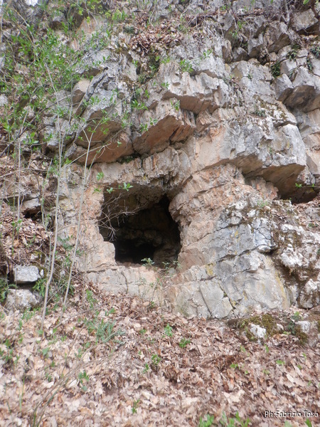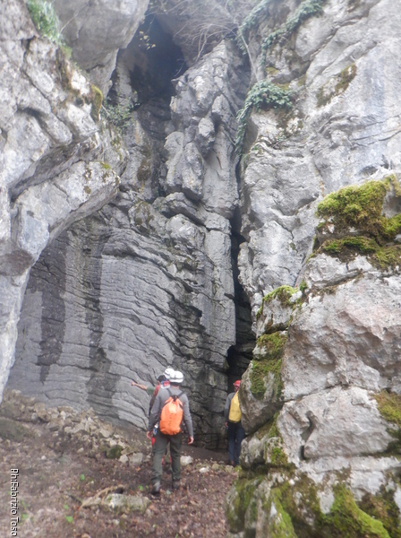 Qua con mio stupore arriviamo ad un tratto in piano, dopo una decina di metri la parete riprende con pareti verticali che si aprono a formare una imponente insenatura la cui apertura e’ parzialmente nascosta da un parallelepipedo di roccia che emerge in mezzo al tratto in piano…con molta fantasia probabilmente l’insieme puo’ ricordare un orecchio. In ogni caso e’ una struttura maestosa e molto interessante.
