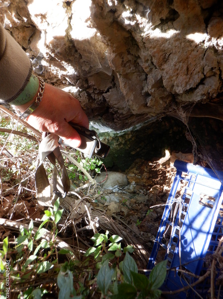 Quando Gabriele mi raggiunge riprendiamo la ricerca delle grotte. I punti delle possibili grotte li avevo nel GPS che mi e’ stato rubato, quindi l’unico che ha i punti e’ Gabriele. Consultando il suo fido GPS decreta che guardando verso la parete dobbiamo dirigerci a destra…e cosi’ facciamo. Incontriamo svariati buchi, li controlliamo ma non ci danno soddisfazione.