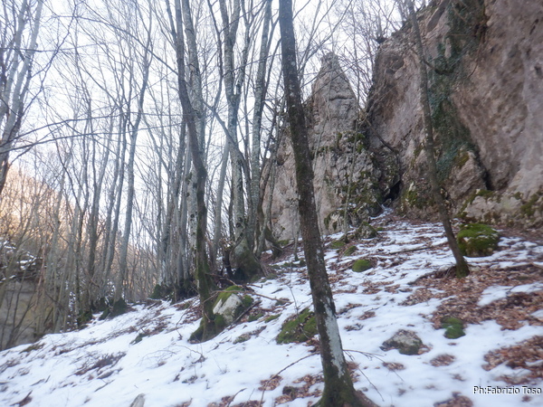 Come capita sempre piu’ spesso al sabato ci troviamo sempre i soliti quattro: Gabriele ed io, io e Gabriele! Provo a proporre di andare a Bucio Nero’ ma Gabriele decreta:”Troppo freddo, andiamo invece a rivedere i buchi in zona Cofacchi”. Stavolta non ho cuore ad insistere, quindi rimaniamo d’accordo per fare ricognizione ai Cofacchi.