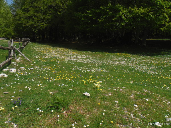 Nel primo pomeriggio mi arriva una telefonata inaspettata. E’ Maurizio, e’ arrivato in forte anticipo rispetto agli altri. Io e Luna facciamo ritorno al piazzale per poi accompagnarlo a grotta Novella. Strada facendo mi fermo a Dolina Sfondata per un saluto.