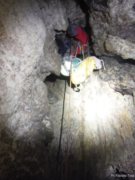 Gabriele dovrebbe illuminare le zone di fondo ma ad un certo punto scompare. Rimaniamo Giuseppe ed io, imperterriti.