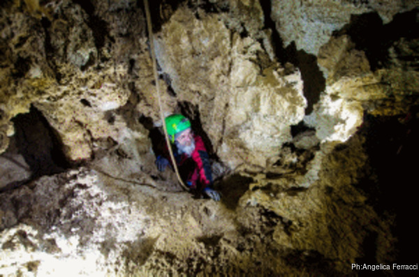 La roboante voce di Mario riempie la grotta di indicazioni per i ragazzi ed aneddoti vari.