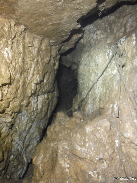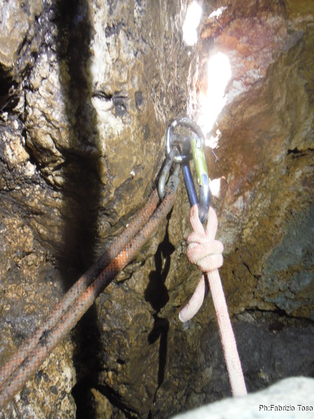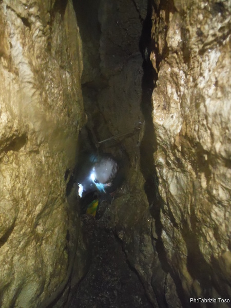 Proseguiamo la salita sempre ad un frazionamento di distanza l’uno dall’altro. Saliamo cosi’ fino alla strettoia successiva.