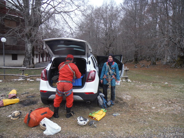 La sosta successiva e’ al parcheggio vicino alla grotta dove troviamo Valerio e Fabio gia’ quasi pronti. Iniziamo subito con i nostri preparativi per andare.