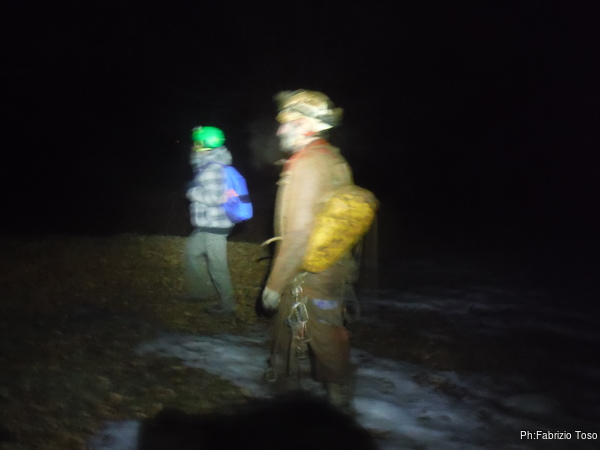 Visto l’abbandono per ko tecnico di Valerio, l’abbandono di Simone e Chiara per avverse condizioni di salute, il freddo incombente che inizia a ghermire sia Fabio che me, decidiamo di chiudere qua la giornata di scavo. Proseguiremo la prossima volta, con migliori risultati, speriamo. Ad ogni modo una buona notizia la portiamo a casa, Valerio si e’ affacciato oltre lo stretto ed ha visto un pozzetto di circa 5 metri.