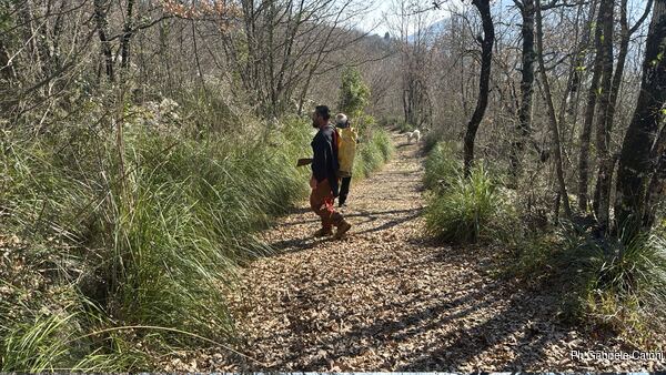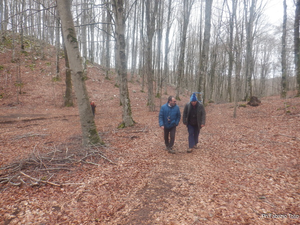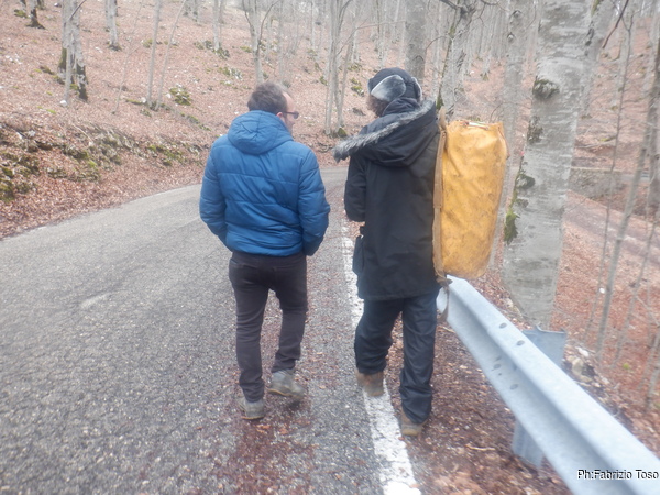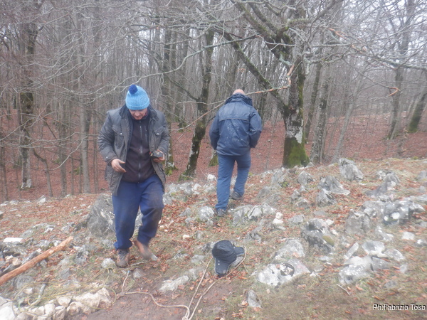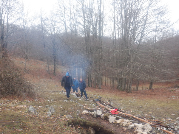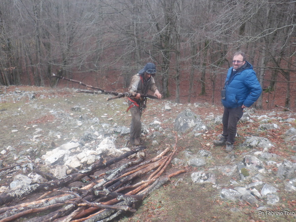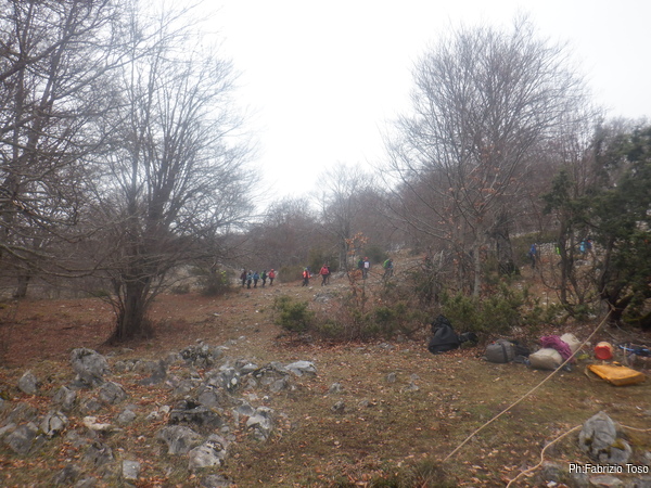 Oggi da queste parti e’ affollato, un gruppo di escursionisti passa per il sentiero sopra di noi e ci guarda con molta curiosita’. Noi ricambiamo. Un paio di loro si avvicinano per chiederci lumi su quanto stiamo facendo, nello scambio di informazioni apprendiamo che si tratta di un gruppo che sta seguendo un corso per guide escursionistiche. Dopo qualche chiacchiera ci salutiamo e loro riprendono il cammino.