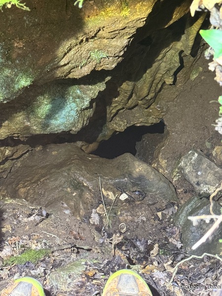 Bella grotticella, non c’e’ che dire. Nerone e’ entrato e dice che prosegue per circa 10 metri poi chiude in frana. Gabriele prende foto e punto GPS per inserirla in catasto.