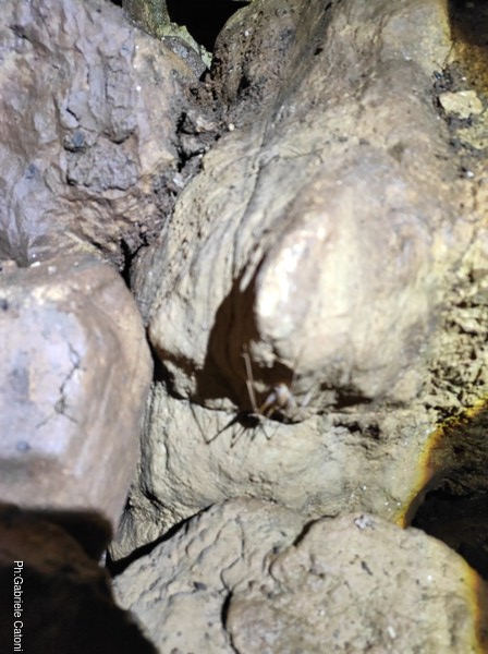 Scendendo il pozzo successivo incontro un un pipistrello con le orecchie, mi incuriosisce quindi gli faccio velocemente una foto cercando di non infastidirlo piu’ di tanto.
