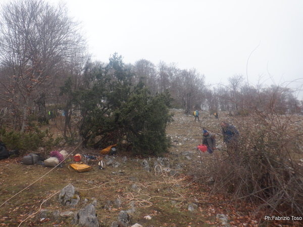 Con determinazione ma senza fretta sistemiamo il materiale, ricomponiamo gli zaini, copriamo la grotta e siamo pronti al rientro verso le auto.