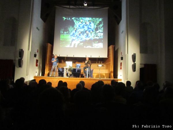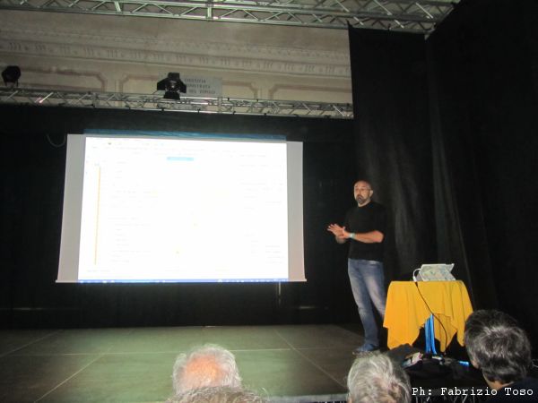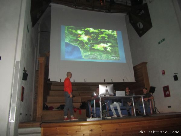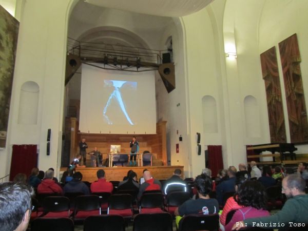 Inizia Maria Grazia. Non e’ fortunata, mostrata la prima diapositiva il proiettore si spegne. Per fortuna Maria Grazia non si perde d’animo. Sfrutta i minuti che occorrono per far funzionare di nuovo tutto per parlare e rispondere a domande sulle orme di dinosauri che ha trovato vicino Esperia (si possono ammirare nel museo del Carsismo). Una volta ristabilita la piattaforma tecnologica, il suo intervento sulla storia delle esplorazioni degli Aurunci prosegue senza altri intoppi. Molto interessante.