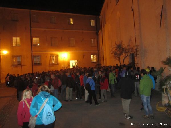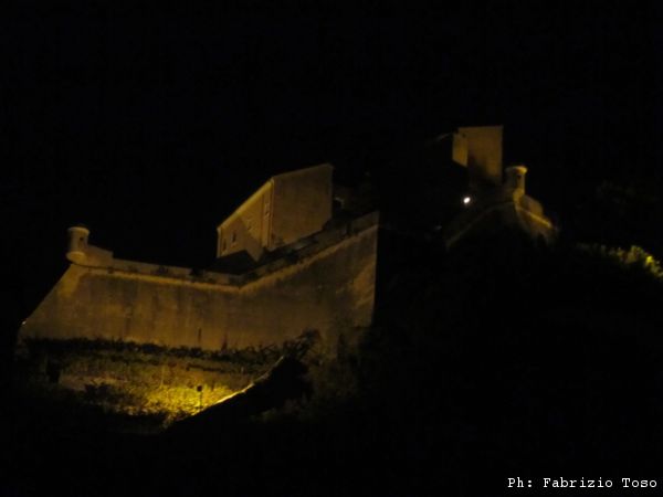 Usciamo dall’auditorium che si e’ fatta notte, E’ ora di pensare alla cena, rigorosamente allo speleoBar. Strada facendo prendo uno foto del castello che sovrasta il borgo.
