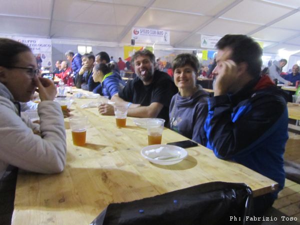 Una allegra cena in compagnia di tanti amici e’ sempre una ottima conclusione per una bella uscita in grotta. Dopo le abbondanti libagioni ed il sostanzioso pasto il ritorno e’ sonnacchioso assai. Per fortuna Laura, la nostra driver, e’ di tempra forte e resiste stoicamente al nostro corale russare portandoci sani e salvi fino al bar “fico”. Continuo a sonnecchiare anche in macchina di Maurizio ma riesco quasi a fare conversazione con lui, tra uno sbadiglio e l’altro, fino a quando mi scarica sotto casa. Alla prossima.