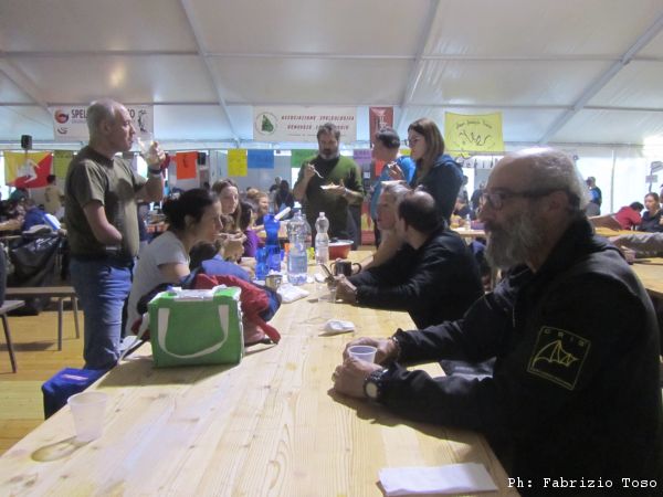 Arriviamo cosi’ all’intervento di Leonardo che ci intrattiene sulla fauna che popola le grotte da queste parti. Leonardo e’ partito da Roma tanti anni fa trasferendosi al nord. Sono rare, ma sempre gradite, le occasioni in cui rivederci.