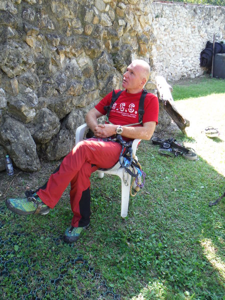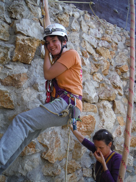Approfitto per scroccargli un cordino. Nel frattempo scende Vincenzina e mi attende a meta’ discesa.