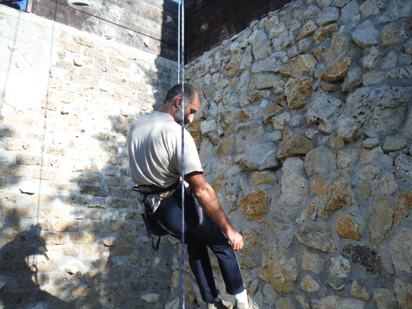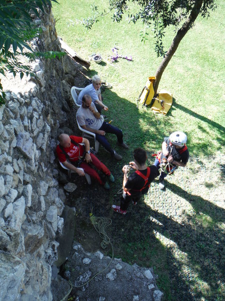Giu’ al fondo gia’ si sentono rumori dei lavori in corso. All’inizio del pozzo trovo il buon Claudio, sta tirando il fiato perche’ ha male ad un piede.