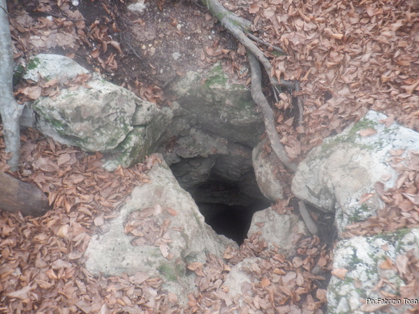Cammina cammina arrivo nel punto dove ricordo di essere passato tempo fa (un paio d’anni?) durante una passeggiata con Alessia, Luca e Corrado. Passiamo accanto al buco che avevamo erroneamente scambiato per Pozzo Pasqualitti e proseguiamo fino a trovare il vero ingresso. A dire il vero questo buco lo aveva trovato Alessia anche al tempo della nostra passeggiata ma non ci era sembrato degno di nota…mai sottovalutare una depressione nel terreno da queste parti!