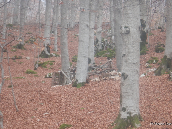 Aggiorno per bene i miei amici poi propongo un’ultima fatica, l’ulteriore allargamento dell’ingresso. La proposta viene accolta e sbrighiamo la faccenda in pochi minuti. Subito dopo iniziamo la raccolta di rami (“filagne” in sublacense) per coprire l’ingresso e fare in maniera che gli animali al pascolo evitino di caderci dentro…e anche per evitare che pastori prudenti possano decidere di chiudere di nuovo la grotta.