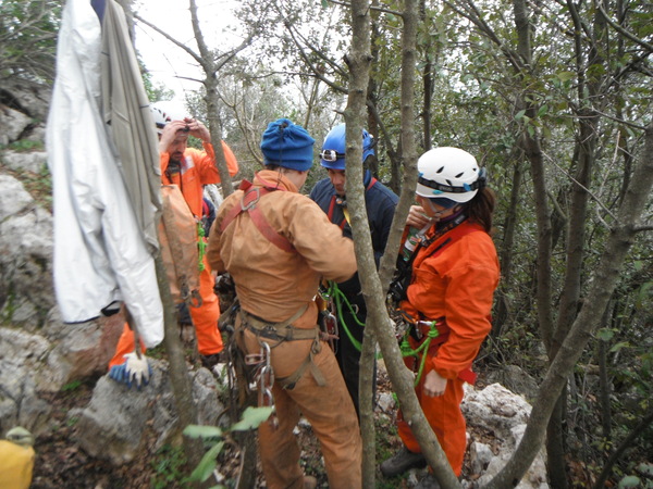 Individuazione in esterno del posizionamento delle possibili uscite. Simona, Augusto, Fabrizio, Simone, Andrea ed io. Nel pomeriggio si e’ unito Giulio.