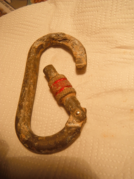 Vabbe’! Sbuffando e sacramentando arrivo alla strettoia pirica. Nota di servizio, tra una sbuffata e l’altra ho approfittato per sostituire il moschettone di un deviatore con fettuccia bianca che ne aveva proprio bisogno (guarda la foto!). Aspetto Veruska, dopo di lei arriva Fabrizio ed io inizio a passare la strettoia. Veruska mi segue quasi senza problemi (e’ strettoista!) e poi arriva Fabrizio che temeva un po’ la strettoia ma con soddisfazione afferma di averla passata sgusciando come una anguilla! A mano a mano che arrivano i nostri eroi li invito a rifocillarsi con l’acqua “stagionata” che lascio in quel punto ad ogni uscita proprio per spegnere la terribile sete che si avverte uscendo. Attendo che i “pupi” ci siano tutti e mi avvio a risalire. Quando sono salito qualche metro dalla strettoia pirica arriva una richiesta accorata sotto forma di ululato di disperazione. A Netta e’ toccato lo zainone che naturalmente nella strettoia non ha fatto altro che incastrarsi in ogni punto possibile. Per precauzione inizio a scendere sui bloccanti ma sono ancora in alto mare quando Netta fa capolino fuori della strettoia, per questa volta lo zainone e’ sopravvissuto! La salita e’ lunga e la pseudo strettoia in cima mi risulta ancora una volta perfida, la devo proprio allargare! Mentre aspetto gli altri mi faccio un pisolo ma una fastidiosa aria fredda disturba il riposino. Occupo qualche secondo riflettendo sul fatto che l’aria stamattina usciva dalla grotta, ora invece entra e poi mi riappisolo. Sento freddo sul sedere, non dovrei avendo messo tra me e la roccia alcuni millimetri di silicone. Procedo velocemente con una ispezione nella parte interessata e con disappunto scopro che buona parte delle pezze applicate si sono scollate miseramente!!! Mi rassegno e continuo il pisolo, ma ecco che giunge Veruska che si associa alla mia intensa attivita’, arriva Cristina. Inizio a sgranchirmi le gambe e quindi parto per l’ultimo pozzetto, non mi soffermo oltre perche’ con la sosta e l’aria fredda che mi arriva addosso inizio ad avvertire dei simpatici brividi non attribuibili a piacere! Arrivato nell’anti-ingresso mi cambio con molta molta calma. Fuori si sente rumore di goccioloni d’acqua e comunque e’ buio pesto, mi sa che abbiamo fatto tardi. Quando arrivano gli altri sono ben pronto e al caldo. Cristina ha l’orologio e ci comunica che sono le 21.30!!! Una volta fuori scopriamo con piacere che deve aver piovuto durante il giorno ma che ora ha smesso. Inizio ad inerpicarmi per il sentiero del ritorno e poi aspetto che il resto del gruppo mi raggiunga, vorrei andare prima che il tempo decida di farci qualche scherzo. Tra l’altro sta iniziando a scendere una simpatica nebbiolina! La risalita procede tranquilla contornata solo dai nostri sbuffi e sospiri. Riacquistiamo la parola solo vicino all’eremo in vetta. La vista delle macchine e’ una bella vista, ci liberiamo velocemente delle vesti fangose e quindi scendiamo in paese con la speranza di trovare un’anima buona che ci faccia mangiare. Ho il ventilatore della macchina rotto e di conseguenza il vetro completamente appannato, Netta mi fa da pilota stando sporta fuori dal finestrino e urlandomi “un po’ piu’ a sinistra”, “un po’ piu’ a destra”. Quando arriviamo alla piazza di S. Oreste sono quasi le 11, notiamo che il ristorante all’angolo e’ ancora con le luci accese. Ci proviamo…Si! Il cuoco e’ disposto a riaccendere i fuochi e cucinarci un piatto di fettuccine!!! su questa nota felice termino il resoconto della giornata sperando vi abbia allietato leggerla!!!