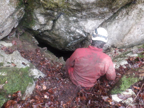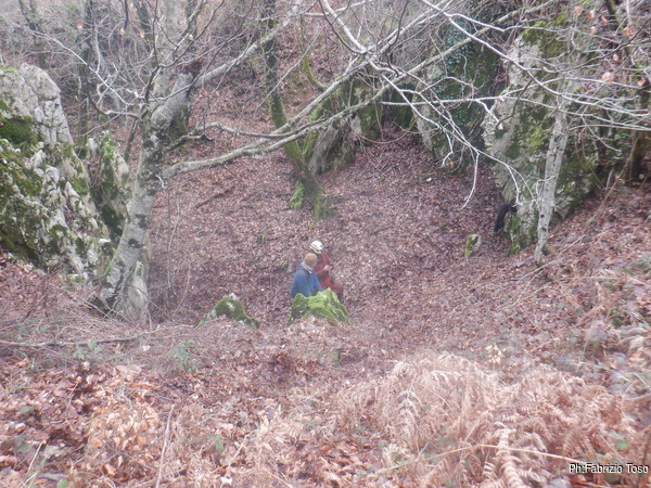 Gabriele non si e’ preparato, strada facendo ha deciso di non essere bendisposto nei confronti del fango di Bucio Nero’ e ha deciso di andare in ricognizione alla ricerca di grotte nei dintorni. Luca si occupa di sistemare la corda d’ingresso.